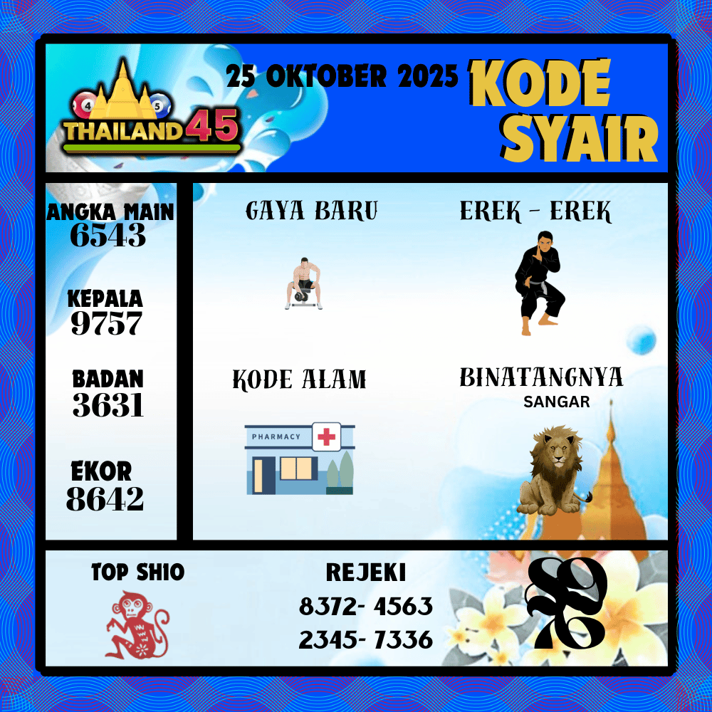 Kode Syair Thailand45 Pools 25 Oktober 2025