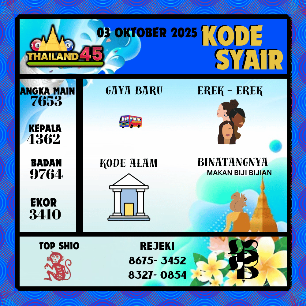 Kode Syair Thailand45 Pools 03 Oktober 2025