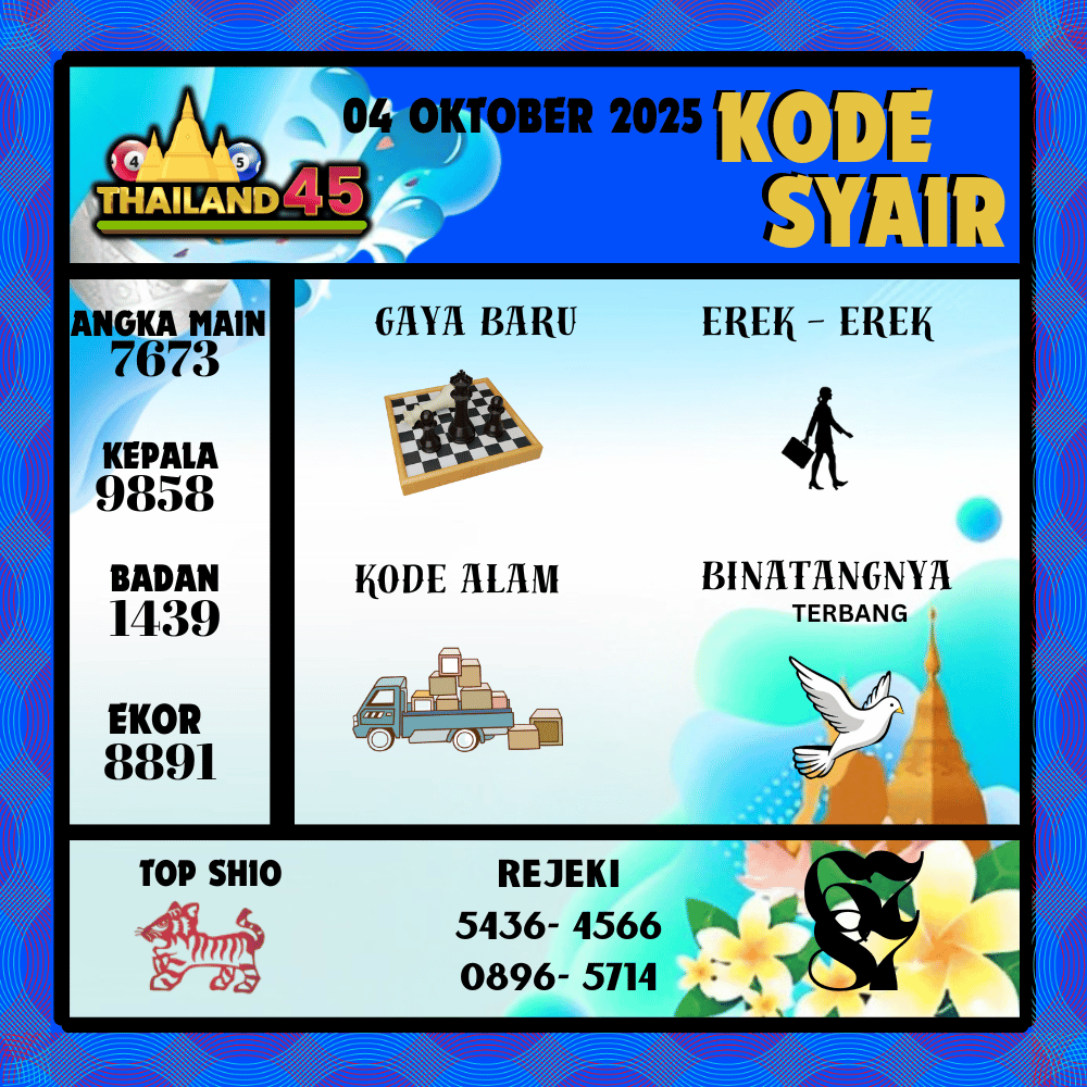 Kode Syair Thailand45 Pools 04 Oktober 2025