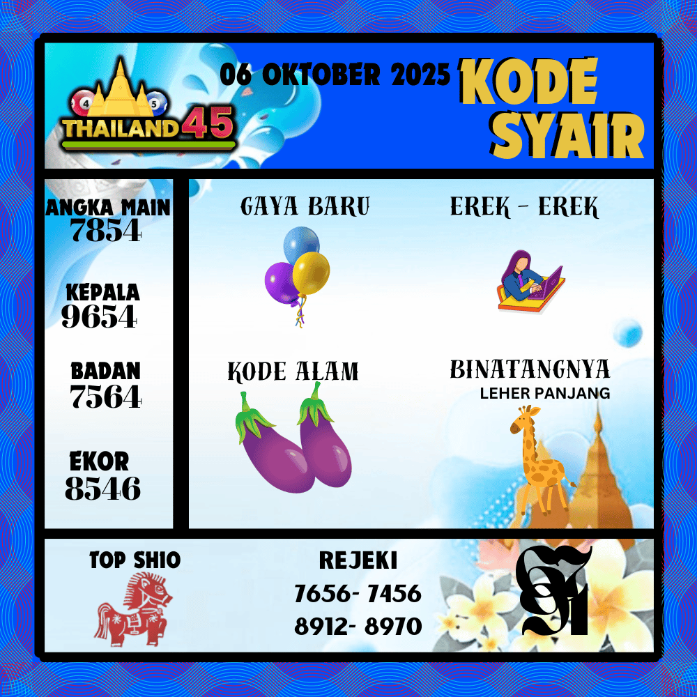 Kode Syair Thailand45 Pools 06 Oktober 2025