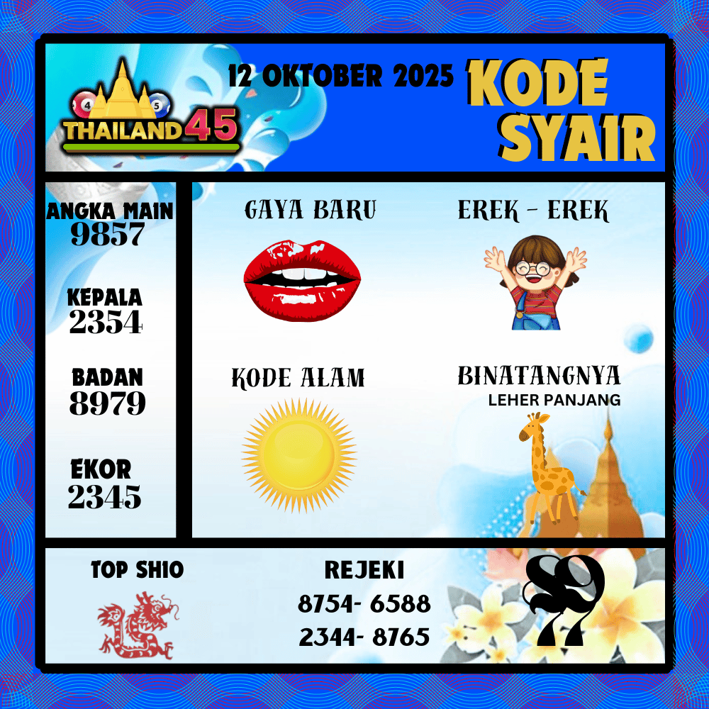 Kode Syair Thailand45 Pools 12 Oktober 2025