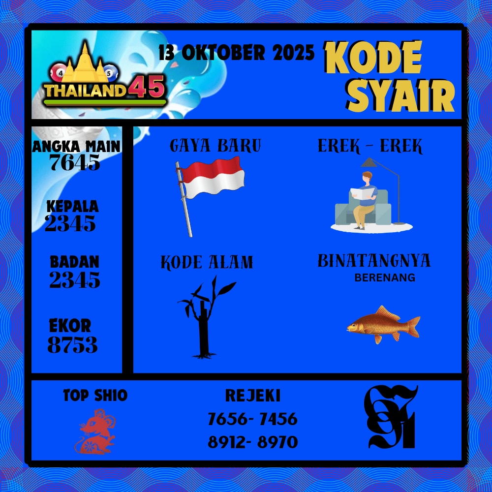 Kode Syair Thailand45 Pools 13 Oktober 2025