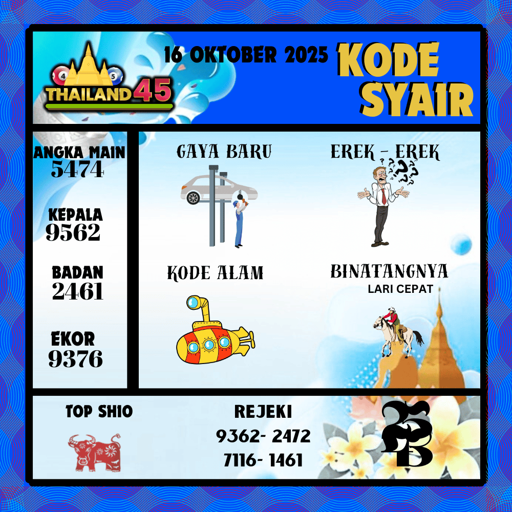 Kode Syair Thailand45 Pools 16 Oktober 2025