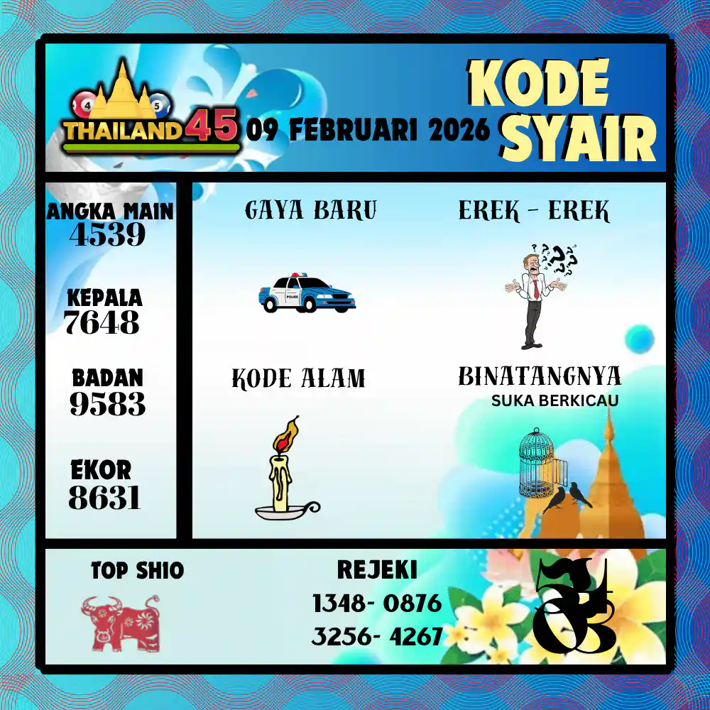 Kode Syair Thailand45 Pools 09 Februri 2026