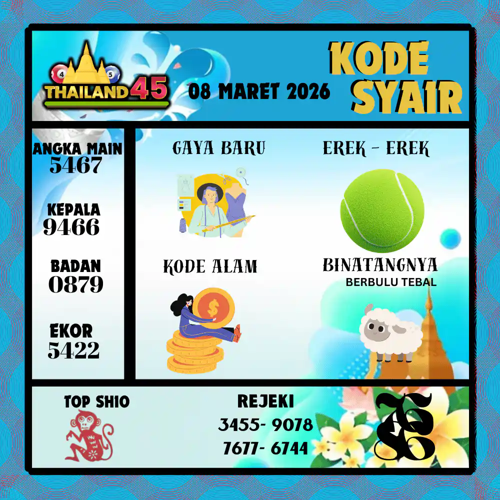 Kode Syair Thailand45 Pools 08 Maret 2026