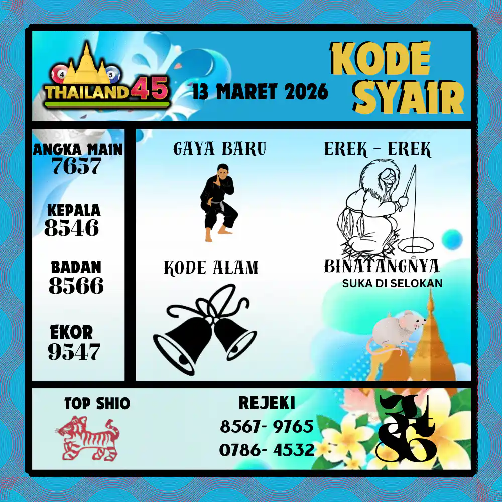 Kode Syair Thailand45 Pools 13 Maret 2026