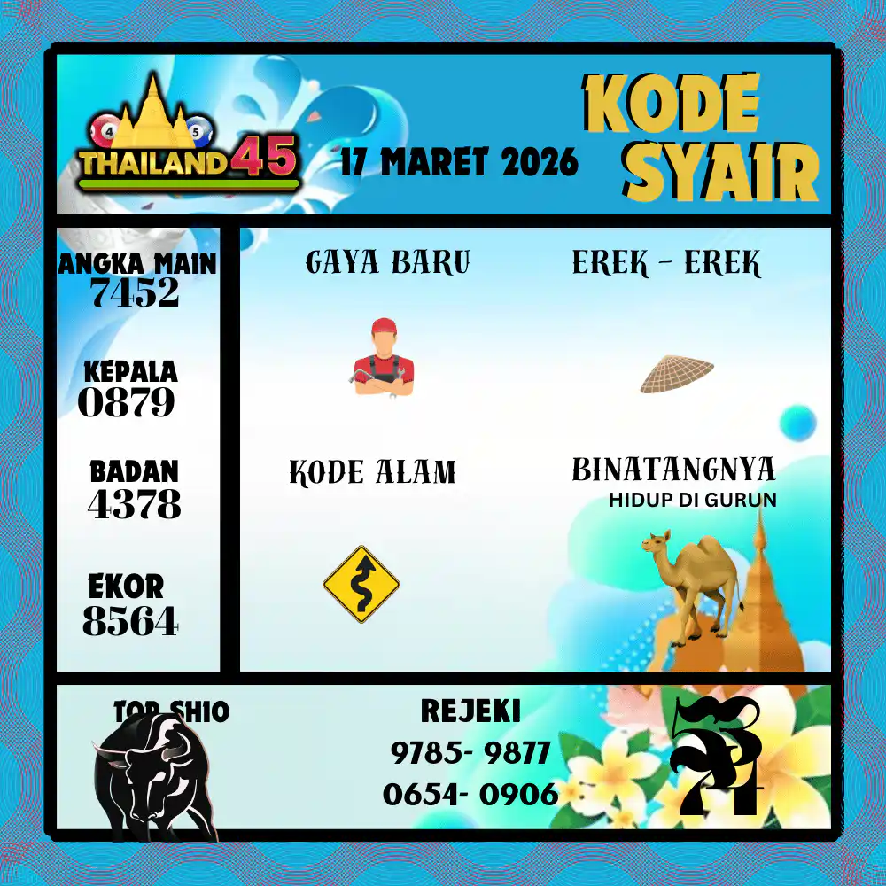 Kode Syair Thailand45 Pools 17 Maret 2026