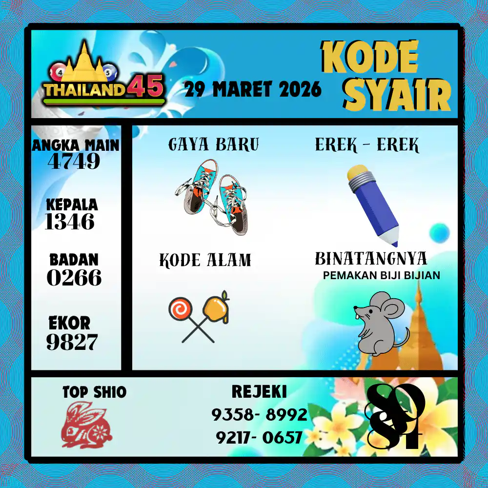 Kode Syair Thailand45 Pools 29 Maret 2026