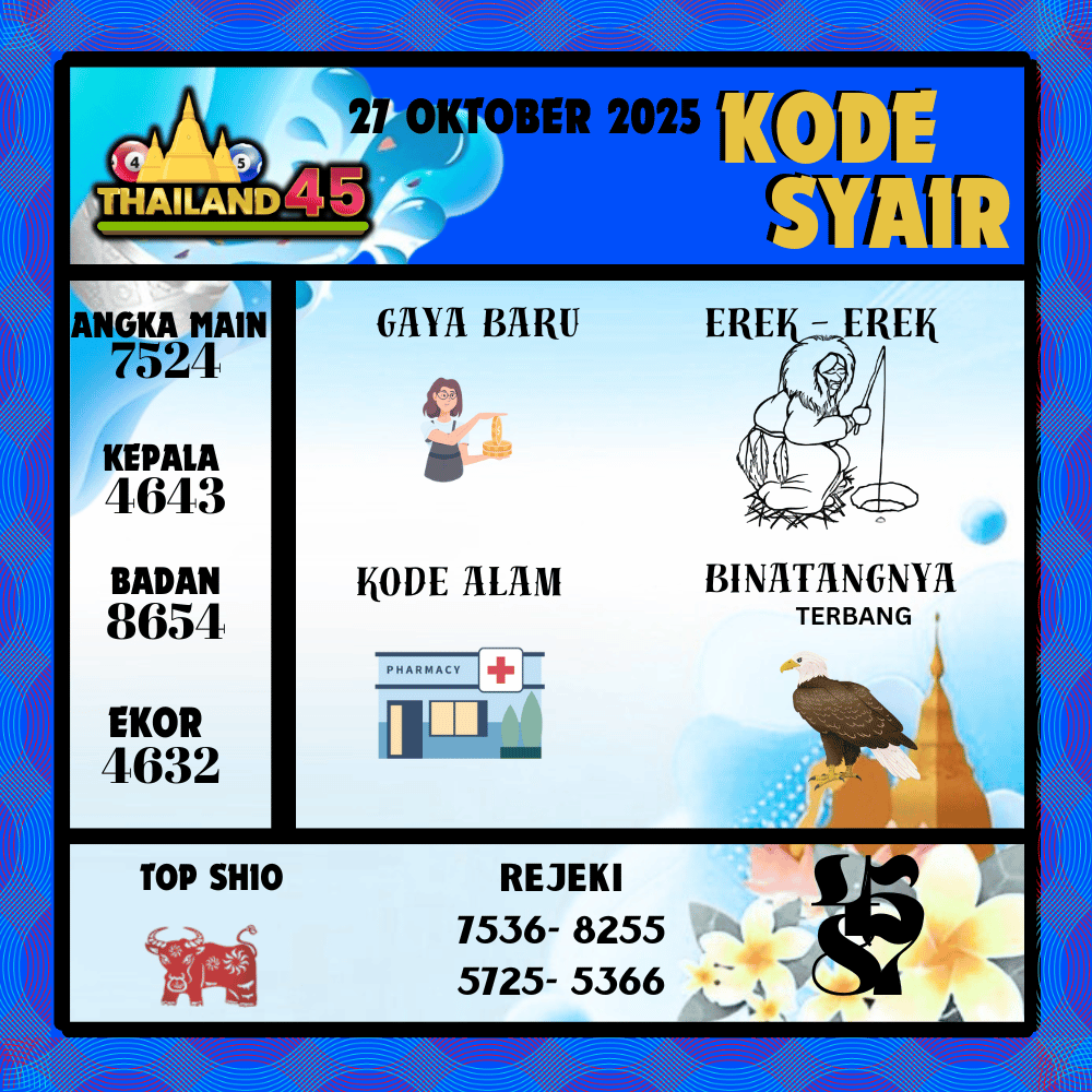 Kode Syair Thailand45 Pools 27 Oktober 2025