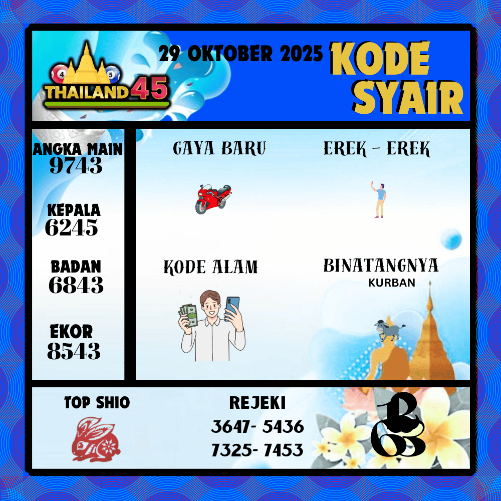 Kode Syair Thailand45 Pools 29 Oktober 2025