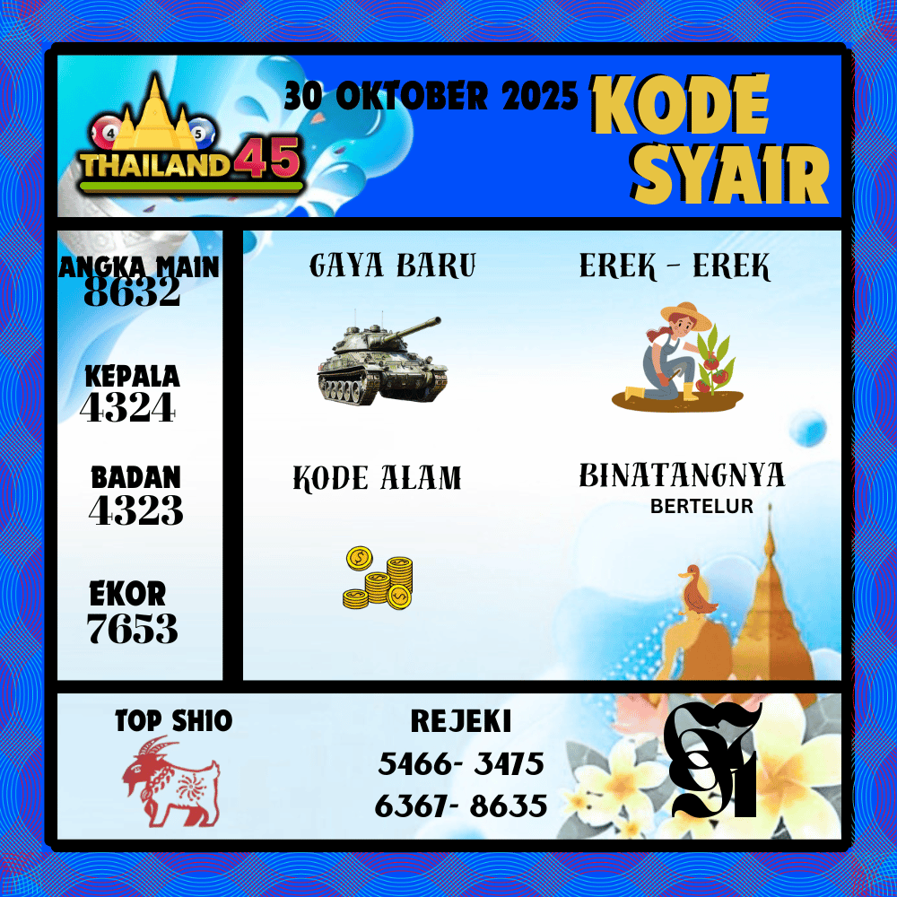 Kode Syair Thailand45 Pools 30 Oktober 2025