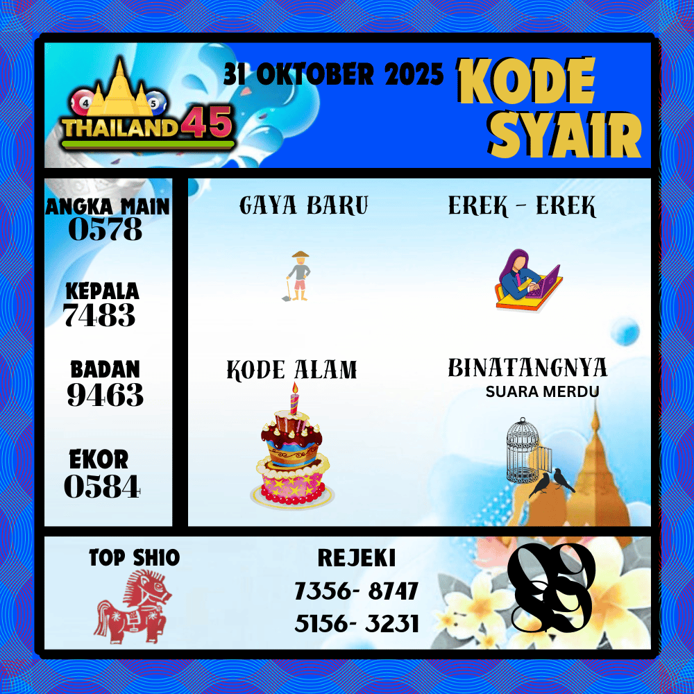 Kode Syair Thailand45 Pools 31 Oktober 2025