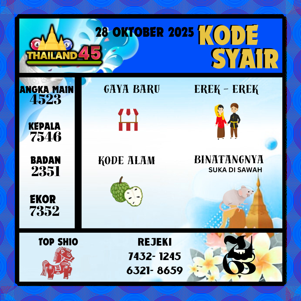 Kode Syair Thailand45 Pools 28 Oktober 2025