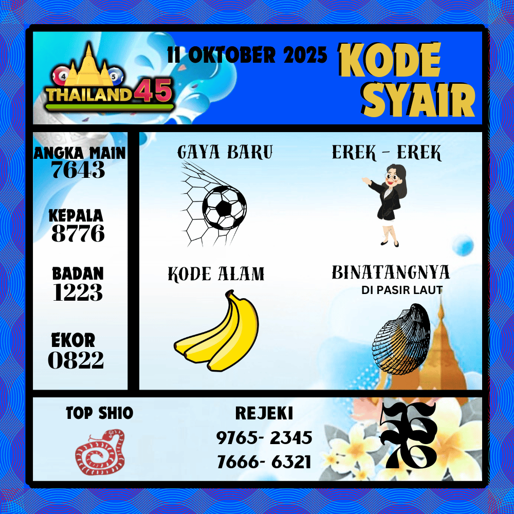 Kode Syair Thailand45 Pools 11 Oktober 2025